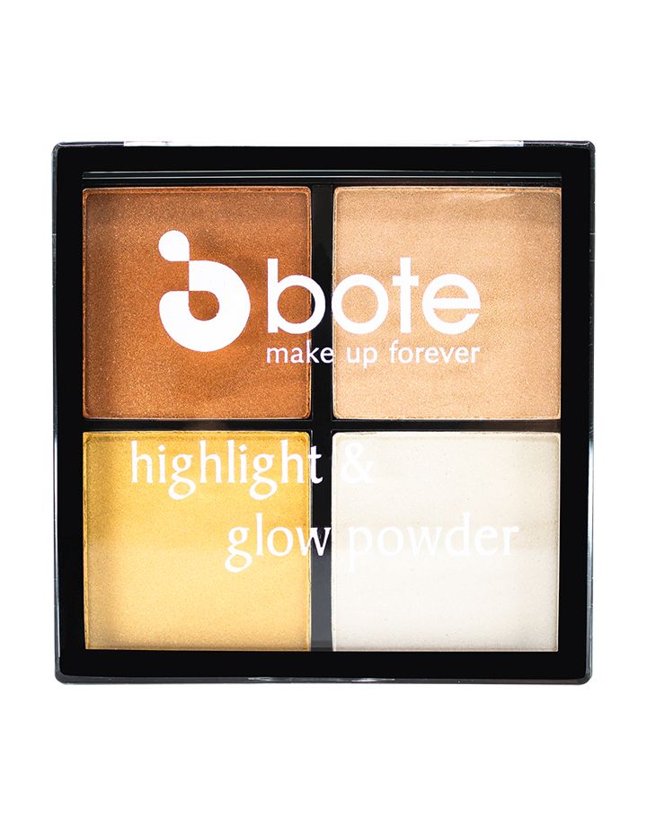 Bote Make up higlight & glow powder kitinde yoğun parlaklığı olan 4 renk tonu bulunur. Hafif, zarif bir formüle sahip her bir gölge, doğal bir parıltı kaplaması ile şekillendirilebilir kapatma sağlar. Her tonu etkileyici renkler sunar ve kolayca uygulanır. Elmacık kemiklerine, burun köprüsüne ve göz bebeklerine tam parlama için uygulayın.